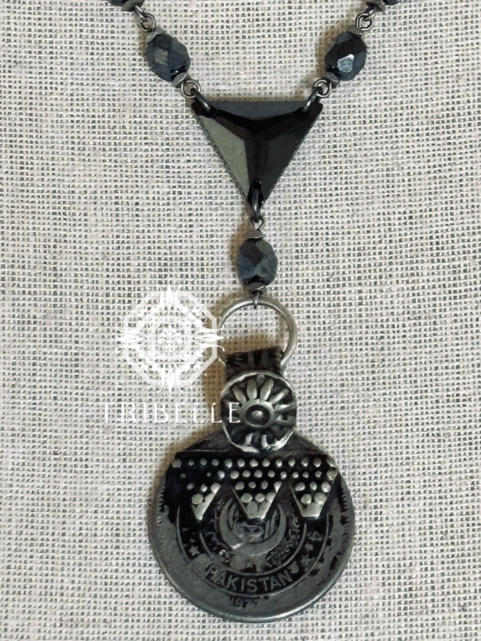 素材:トライバルコイン、ガラス、ビーズ、チェーンなど